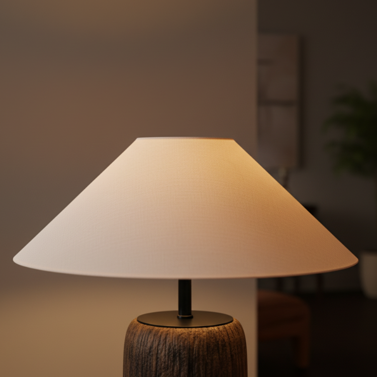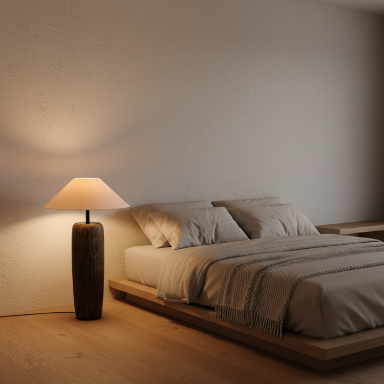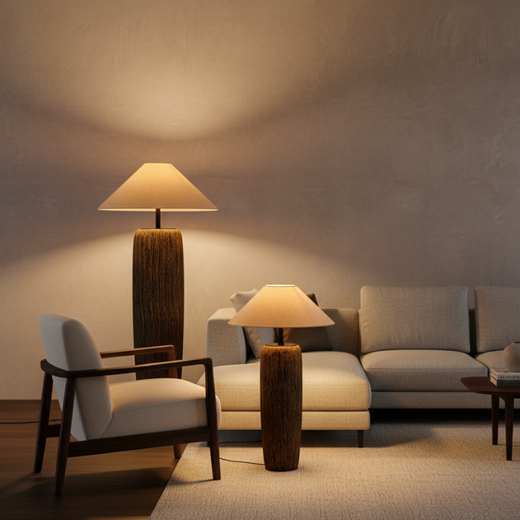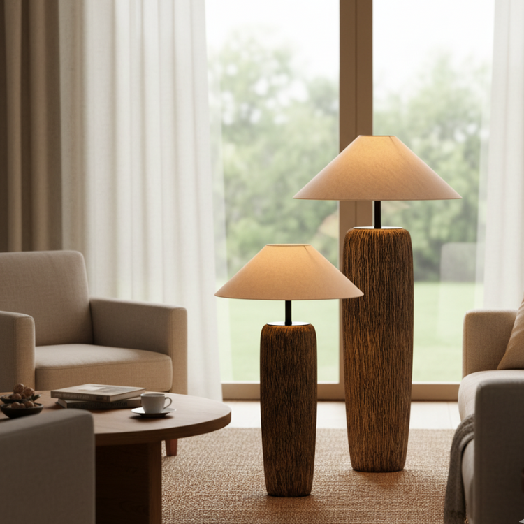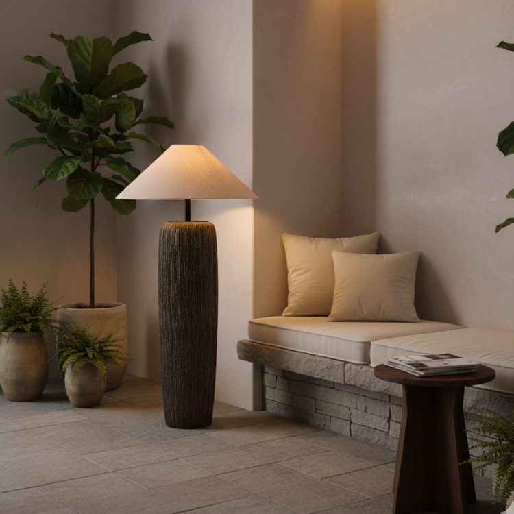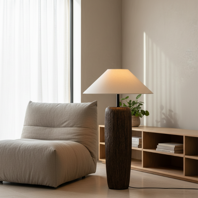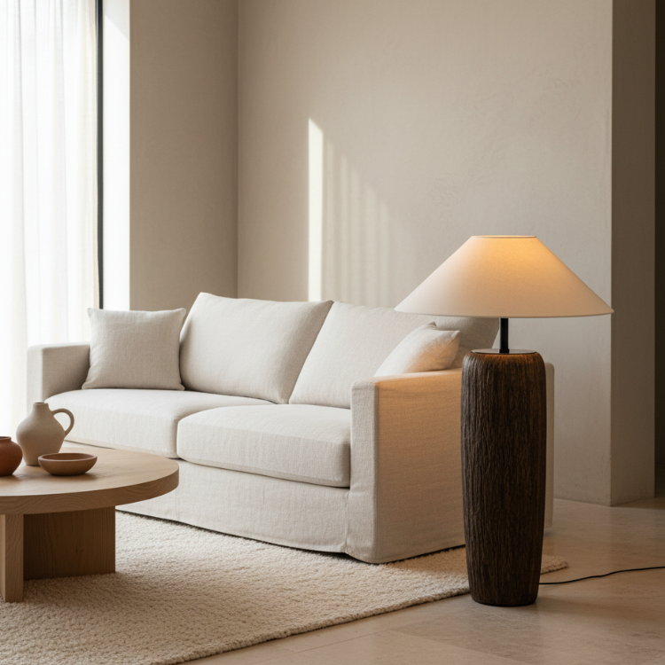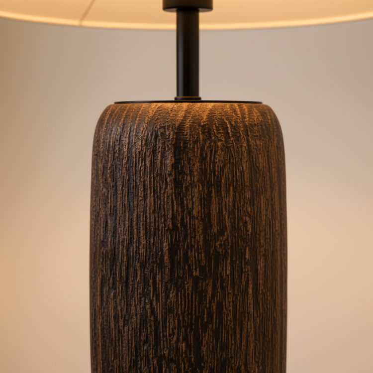 Elandor – Kopott fa állólámpa szöveternyővel