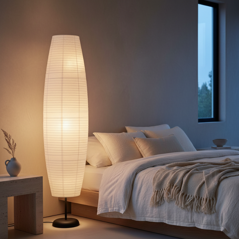 Auremari – Lampada da terra a colonna minimalista in carta di riso